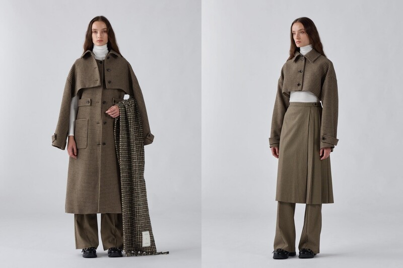系列中的每款单品都具备多样变化的可能性,像是菱格压纹外套变换为斗篷风格,两件式大衣则可分拆成短款外套或长版背心得灵活设计,同时也反映出设计师Rok Hwang提到:本次系列以棕色、米色为主色调,并巧妙融入了绿色与蓝绿色等复古色彩,是编辑也看了眼前一亮的有趣合作!