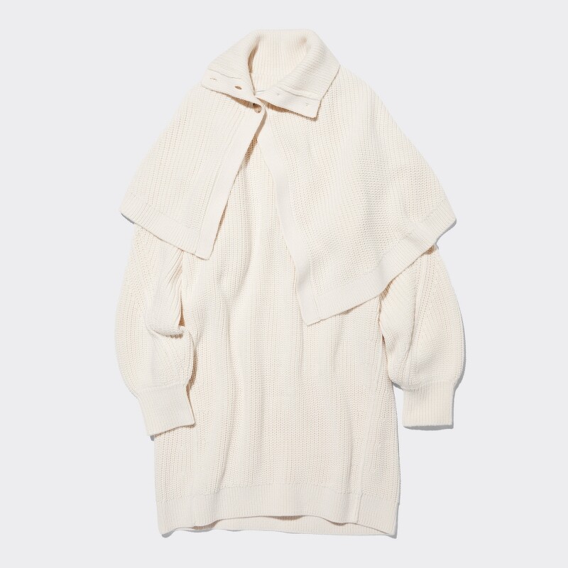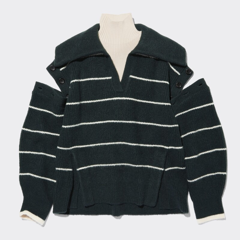肩部镂空搭配两件式水手高领内搭的针织上衣,可以拆开搭配也可以叠搭穿着,展现色系层次感。