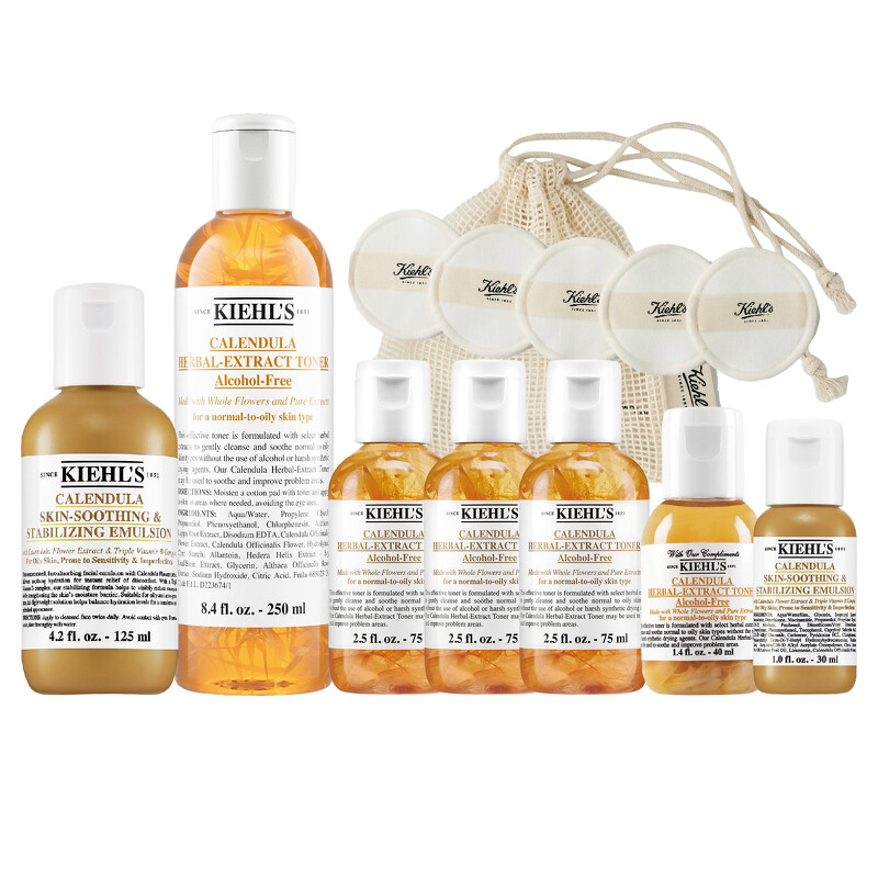 购买金盏花指定组合,即赠Kiehl’s环保水洗棉(价值NT$750)乙个。只送不卖的实用美肌小物,是打造发光发亮素颜的秘密武器!